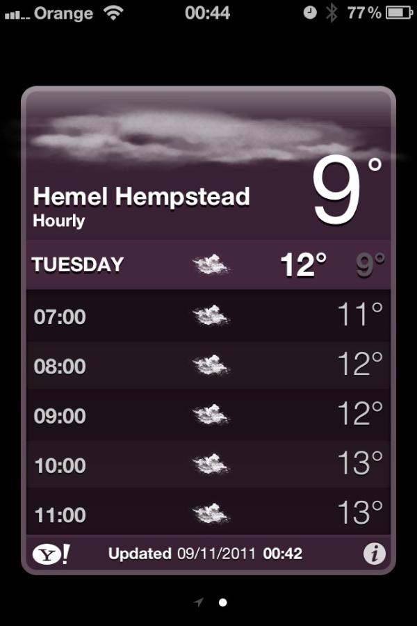 My-Cast has been my iPhone weather app for 2 years now as it gives hourly weather. But, seems default one does too now: http://t.co/aZH5bGiU