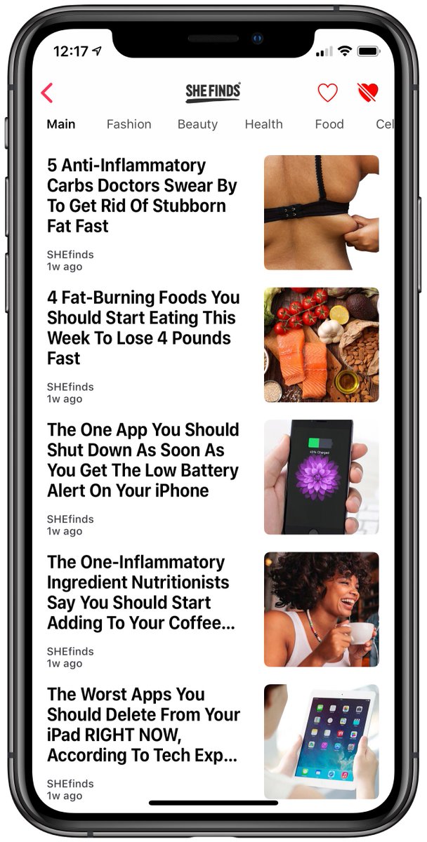 Looks like @shefinds is cornering the market on bullshit clickbait articles for women who are both anxious about their weight and their iPhone battery life.