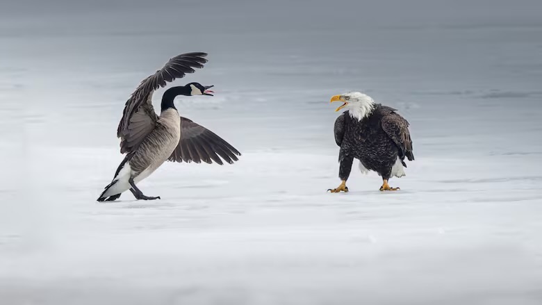 'Fight between bald eagle and Canada goose in Burlington bay 'very symbolic,' says photographer' – CBC... March 15, 2025 · aside ‘Fight between bald eagle and Canada goose in Burlington bay ‘very symbolic,’ says photographer’ – CBC Tags: #Photo #Animals #Canada #US #Politics #Link